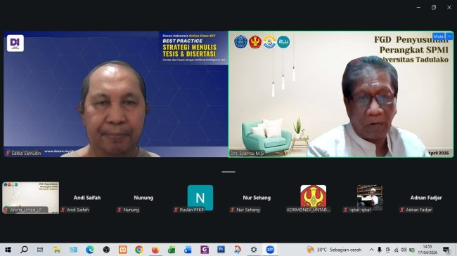Palu – Lembaga Penjaminan Mutu dan Pengembangan Pembelajaran (LPMPP) Universitas Tadulako melaksanakan rapat koordinasi persiapan penyusunan Laporan Evaluasi Standar Pelayanan Minimal (SPM) UNTAD Tahun 2025 pada Jumat, 17 April 2026. Kegiatan ini berlangsung mulai pukul 14.00 WITA hingga selesai dan dilaksanakan secara daring melalui aplikasi Zoom, sebagai bentuk dukungan terhadap fleksibilitas kerja dan pelaksanaan Work…